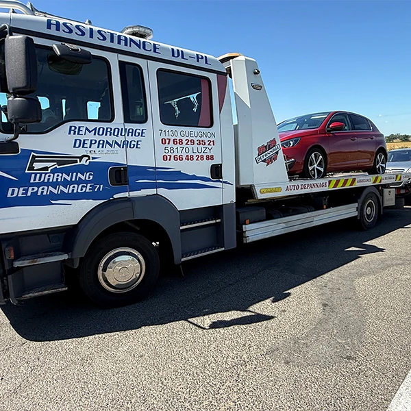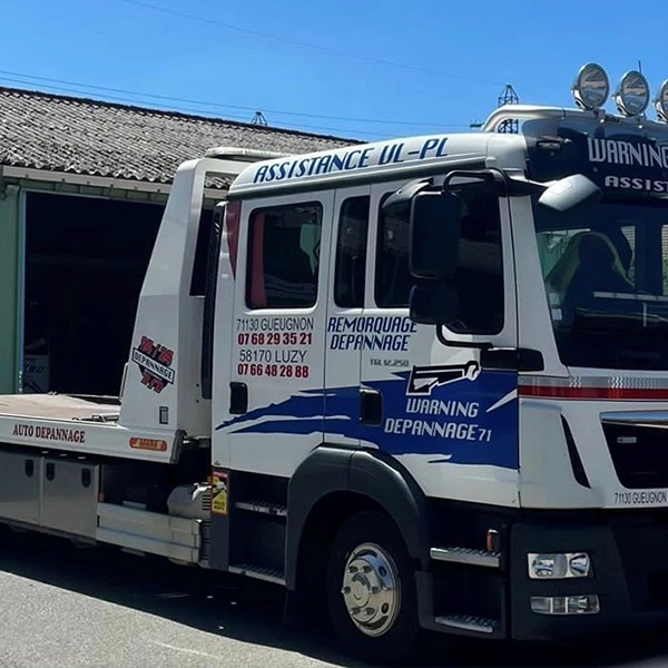 Depuis 2019, Warning Dépannage 71 est une entreprise familiale spécialisée dans le dépannage et le remorquage de véhicules légers, de poids lourds et de tous types de véhicules. Basée à Gueugnon, près de Digoin et de Luzy, elle intervient rapidement sur l’ensemble de la Saône-et-Loire (71), mais aussi dans la Nièvre (58) et l’Allier (03). Forte d’une équipe qualifiée disposant de plus de 20 ans d’expérience dans le domaine, elle peut assurer tous types d’interventions, même les plus complexes : ouverture de porte en cas de clé bloquée, dépannage après un accident ou une panne, prise en charge de véhicules embourbés, immergés, incendiés ou difficiles d’accès, etc... L’entreprise propose également des services de levage, de grutage, de manutention lourde et de rapatriement de véhicules sur toutes distances. Agréée par toutes les assistances et assurances, Warning Dépannage 71 bénéficie aussi de l’agrément RCEA pour les véhicules légers et travaille ponctuellement en collaboration avec la gendarmerie. De plus, un espace de repos autonome est à la disposition des clients ; il est équipé du nécessaire pour que le temps d'attente soit plus agréable (machine à café, fontaine à eau, micro-onde, table à langer, coin repas...). En cas d'urgence, panne ou accident, vous pouvez également nous contacter directement sur nos lignes et nous prendrons en charge votre dossier.